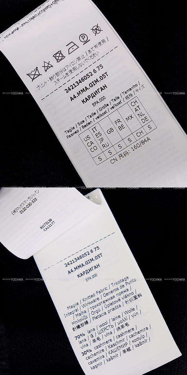 Cardigans were received. It is the cardigan which 1951 was garnished with in "MaxMaraGram" font which is MAX MARA foundation age on Bucks tile. Feel is finished in well soft feel of a material very much. The sleeve which I dropped in the straight line of the V neck creates a feeling of relaxation, and the silhouette can enjoy wide coordinates at the length that it is easy to put together to both a skirt and underwear by a simple design. Color:Navy Material:Wool/Cashmere Size:#S Total length:79cm Body width:49.5cm Sleeve Length:61cm Shoulder width:37.5cm Accessories:No accessories Product Condition: BRAND NEW SKU:25031908