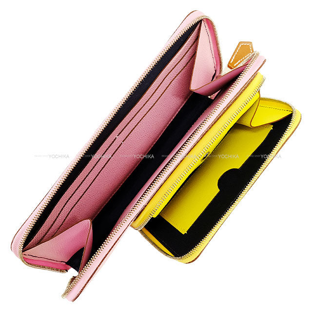 HERMES long wallet Nouveau To Go wallet Mauve sylvestre/Lime/Cuivre/Caban(Y3) Veau Epsom/Veau Swift Silver HW Stamp U[EXCELLENT][Authentic]