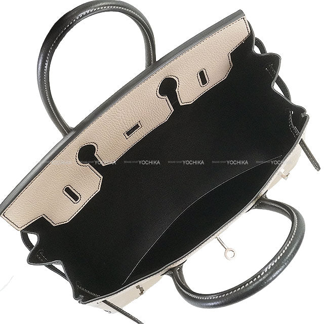 HERMES Handbag Birkin30 Personal Order HSS Hot Stamped Cheval Gris Tourterelle/Noir (Black) Chevre Mysore Mat Silver HW Stamp B[EXCELLENT][Authentic]