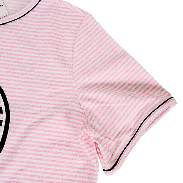 CHANEL Short sleeve t shirt Ladies LA PAUSA Border Pink/Blanc (White)/Noir (Black) Cotton/Nylon/Polyurethane #50 P60455[EXCELLENT][Authentic]