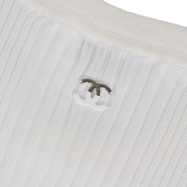 CHANEL Knit Short-Sleeve COCO Mark Blanc (White) Cotton/Reyon #36 P78665[BRAND NEW][Authentic]