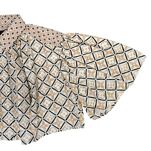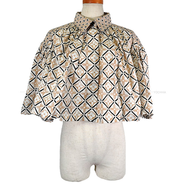 2023SS LOUIS VUITTON Blouse Women's Top Cape By the Pool Cropped Beige/Blanc (White)/Noir (Black) Cotton #38 1ABPW6[EXCELLENT][Authentic]
