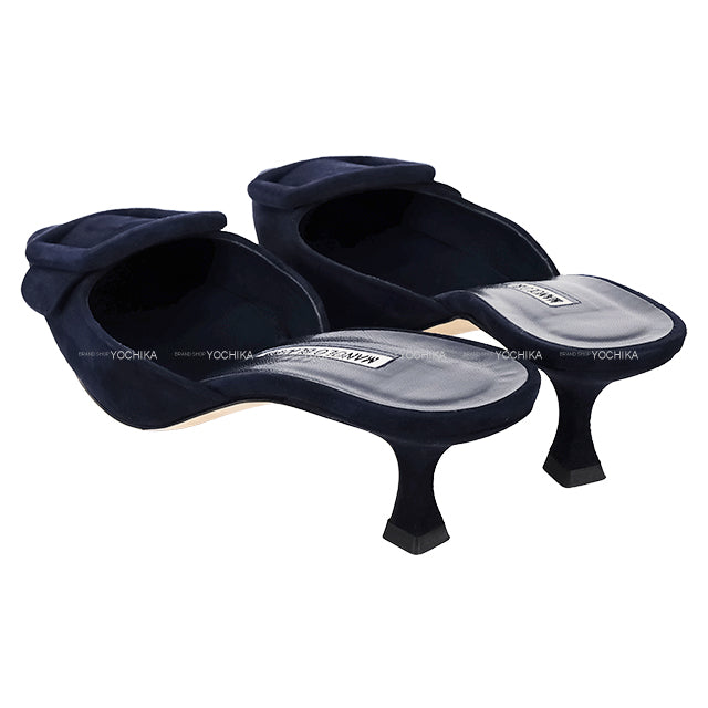 How about MANOLO BLAHNIK's pointed toe mule pumps? MANOLO BLAHNIK, which became even more famous through the TV drama "Sex and the City", is a British shoe brand founded in London in the 1970s. It is characterized by thin, high heels and decorative designs. Many celebrities also wear MANOLO BLAHNIK shoes, and they frequently appear in movies and dramas. These mule pumps in navy and suede material stand out for their elegance. If the size fits, please consider them. Color:Navy Material:Suede