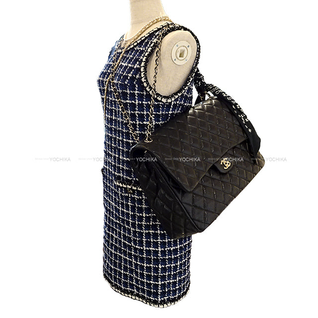 [Pre-loved] CHANEL Shoulder bag Jumbo Matelasse XXL 40 COCO mark Chain With twilly Noir (Black) Graind Calf(Caviarskin) Gold HW[LIKE NEW][Authentic]