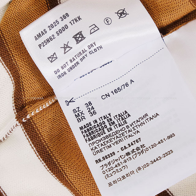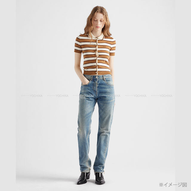 PRADA Cardigan Stripe Short Sleeve Camel/Beige Cotton #36 P25N62[BRAND NEW][Authentic]