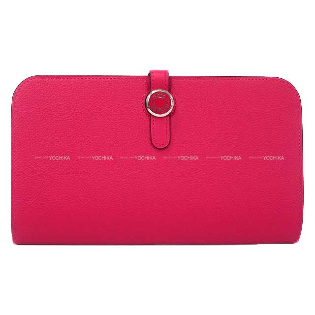 HERMES long wallet Dogon GM Rose Mexicoe Evercolor/Lacquer Silver HW Stamp Y[EXCELLENT][Authentic]