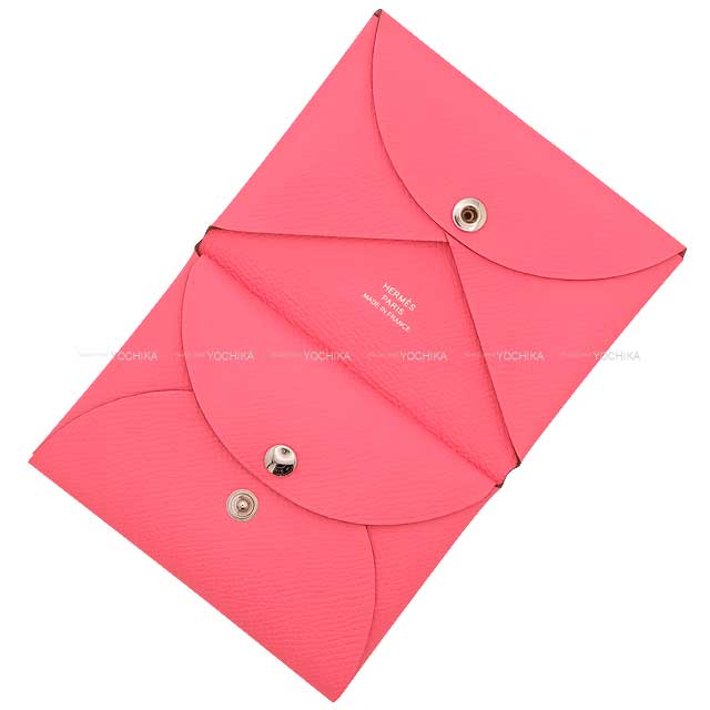[Pre-loved] HERMES card holder Calvi Duo Rose Azalee Veau Epsom Silver HW Stamp B[LIKE NEW][Authentic]