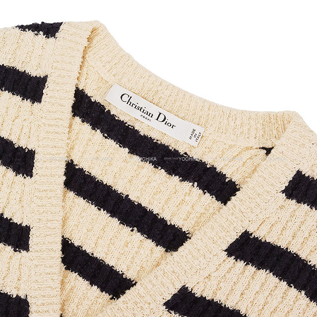 [Pre-loved] 2024SS Dior Cardigan Mariniere Button camisole 2Set Navy/Beige Cotton100% #38 324W03AM715[LIKE NEW][Authentic]