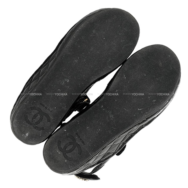 [Pre-loved] CHANEL sandals Sports COCO Mark Matelasse Noir (Black) Suede/Lambskin #36c Champagne Gold HW G37456[LIKE NEW][Authentic]