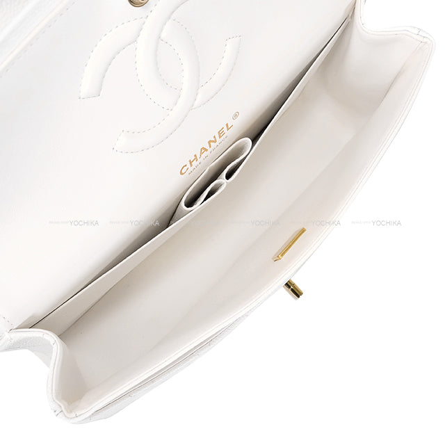 [Pre-loved] CHANEL Shoulder bag Matelasse COCO Mark W Flap Chain Blanc (White) Graind Calf(Caviarskin) Champagne Gold HW A01112[LIKE NEW][Authentic]