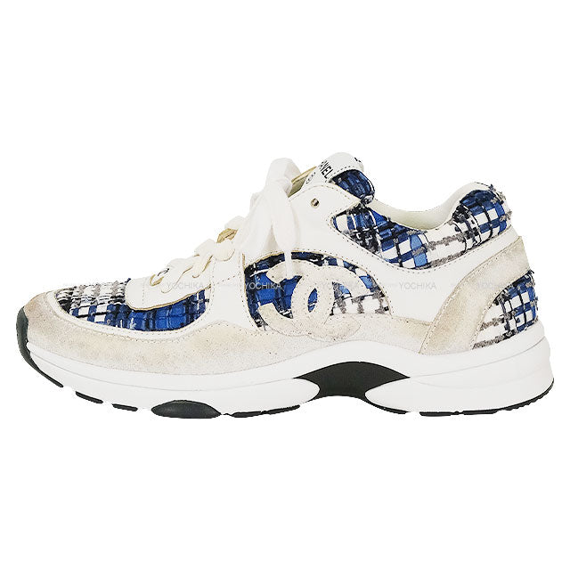 [Pre-loved] CHANEL sneakers Coco mark 24P White/Blue/Black/Gray Tweed/Suede/Calfskin #39 G38299[LIKE NEW][Authentic]