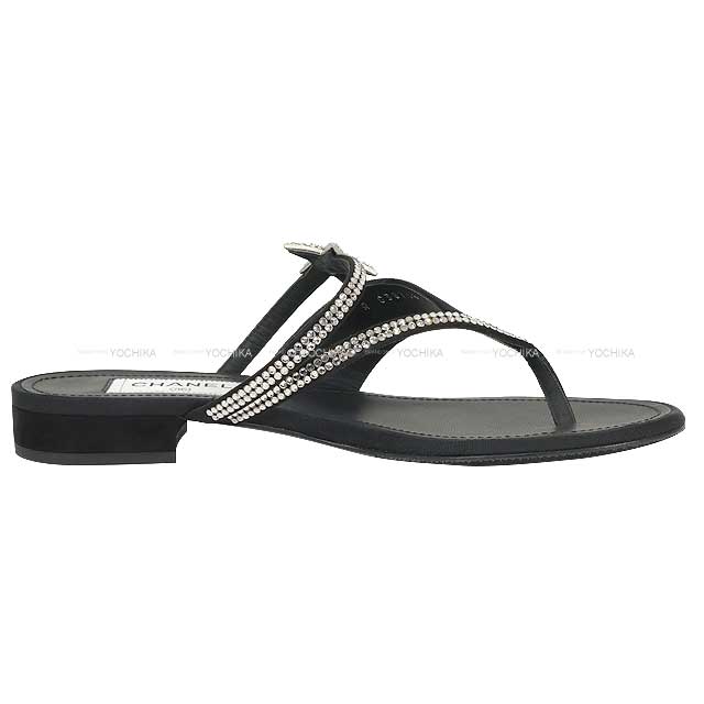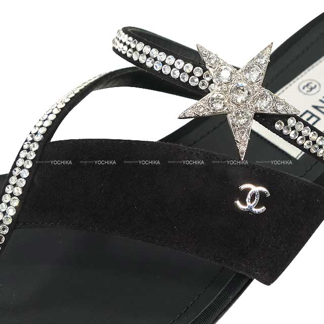2022SS CHANEL sandals Coco mark Tong rhinestone Star Motif Noir (Black) Suede/Leather #38 Silver HW G38758[EXCELLENT][Authentic]