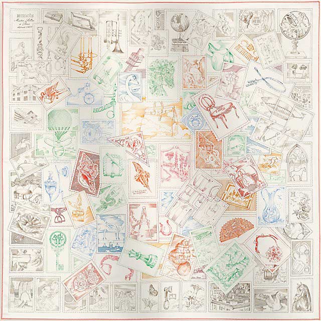 2025SS HERMES scarf Carre 90 Le Philateliste du Faubourg Pink/White/Multi color Silk100%[BRAND NEW][Authentic]