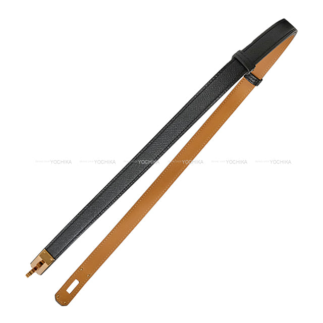 [Pre-loved] HERMES belt Kelly Belt 18 Noir (Black) Veau Epsom Rose Gold HW Stamp X[LIKE NEW][Authentic]