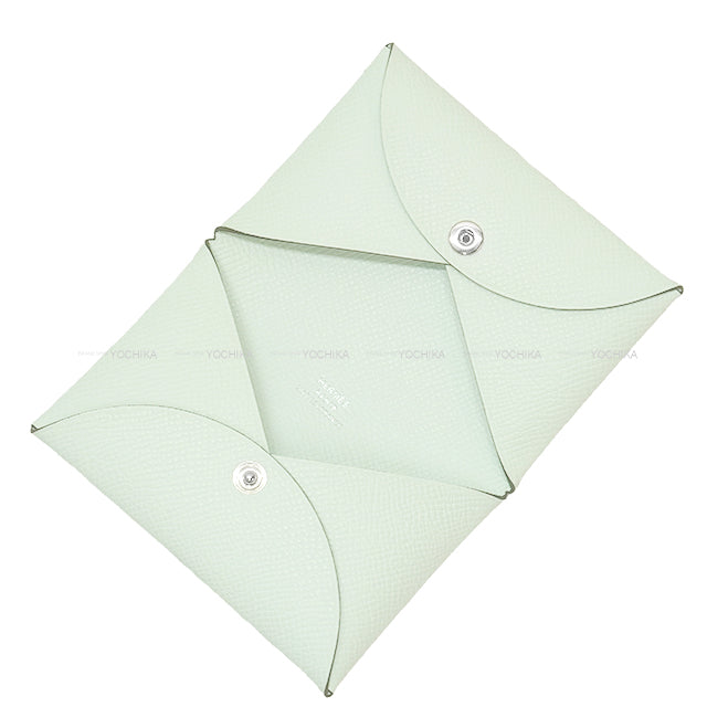 HERMES card holder Calvi Vert Fizz Veau Epsom Silver HW Stamp U[EXCELLENT][Authentic]