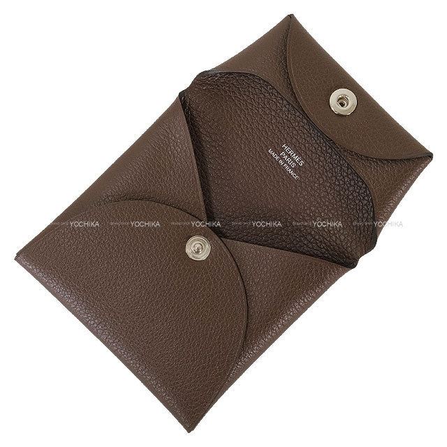 HERMES change purse Bastia Moka Evercolor Silver HW Stamp W[EXCELLENT][Authentic]