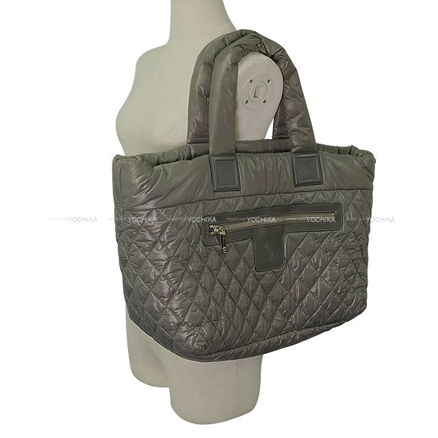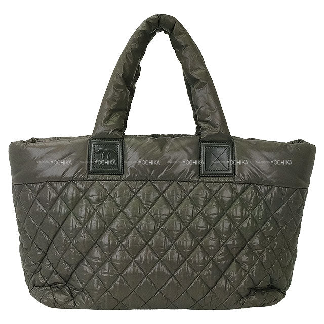 [Pre-loved] CHANEL tote bag Coco Cocoon Medium Matrasse Kaki Nylon Silver HW A48611[LIKE NEW][Authentic]
