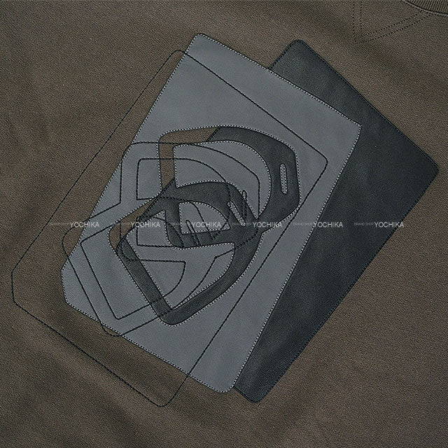 [Pre-loved] 2024AW HERMES Sweat Men's Wool Lining Long Sleeve Leather Patch Etriers Decales Grey Cotton/Lambskin #M[LIKE NEW][Authentic]