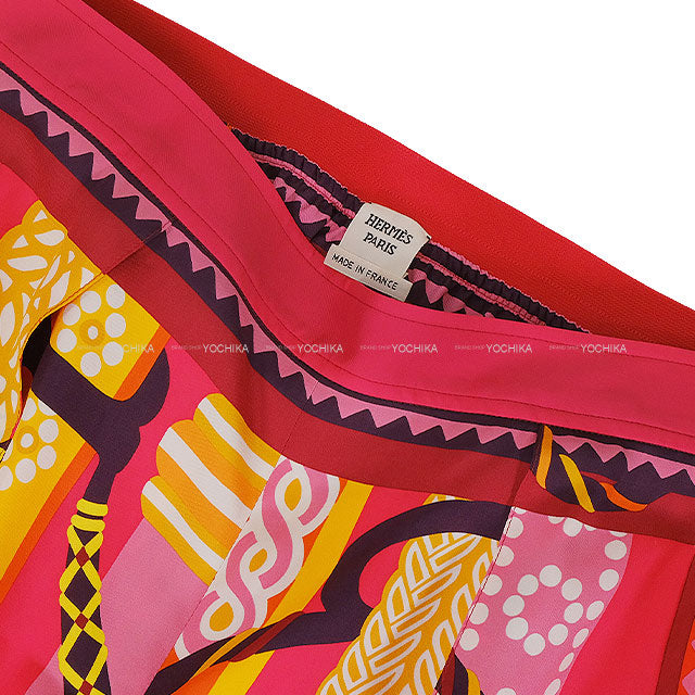 HERMES Pants Pajamas Twillaine Fantaisie d'Etriers All-over pattern Rouge/Multicolor Silk100% #42 3E0440DQ[EXCELLENT][Authentic]