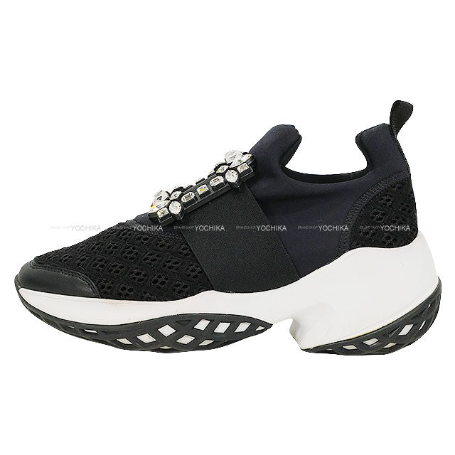 ROGER VIVIER sneakers Viv' Run Strass Buckle Noir (Black)/Blanc (White) Fabric ♯36.5[ALMOST NEW][Authentic]