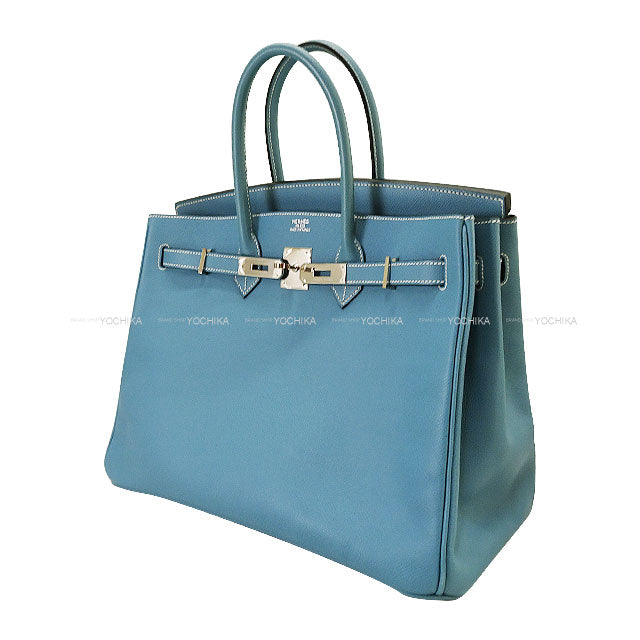 [Pre-loved] HERMES Handbag Birkin35 Bleu Jean Veau Epsom Silver HW Stamp □K[LIKE NEW][Authentic]