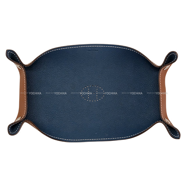 [Pre-loved] HERMES Vide Poche Tray Big Gold/Bleu de Prusse Taurillon Clemence Silver HW[LIKE NEW][Authentic]