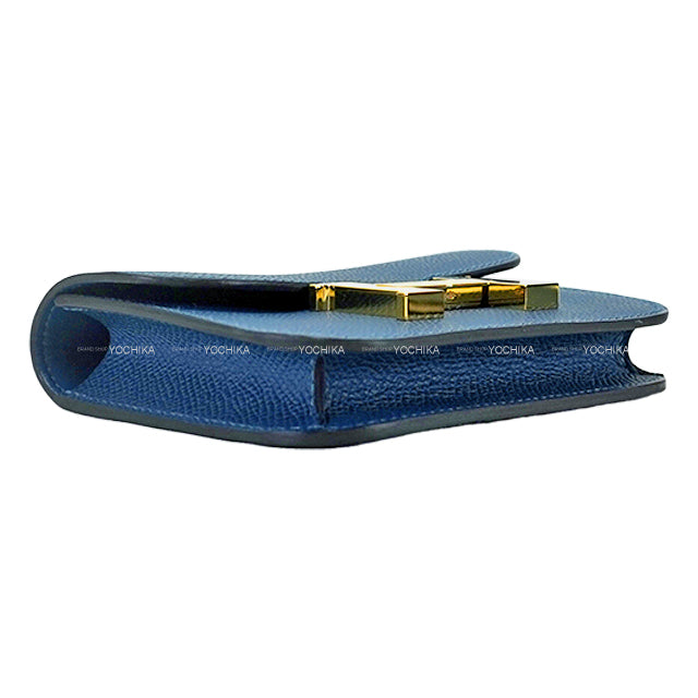 [Pre-loved] HERMES Bi-fold wallet Constance Slim Bleu de Prusse Veau Epsom Gold HW Stamp W[USED SA][Authentic]