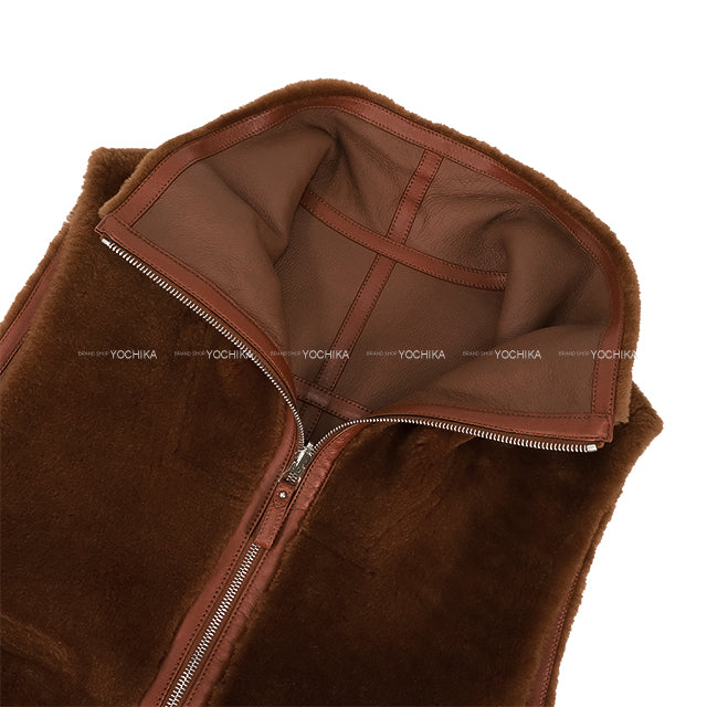 HERMES Vests Reversible Sleeveless Jacket Marron Fauve Sheepskin #34 Silver HW 5H1229D5[EXCELLENT][Authentic]