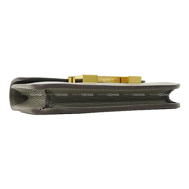 HERMES Bi-fold wallet Constance Slim Gris Meyer Evercolor Gold HW Stamp W[EXCELLENT][Authentic]