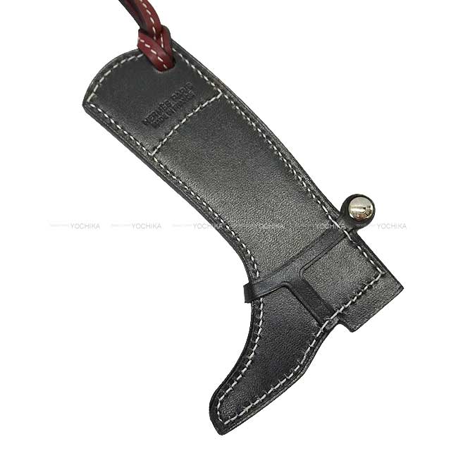 [Pre-loved] HERMES bag charm Paddock Boots Noir (Black)/Rouge H Box Calf/Veau Swift Silver HW[LIKE NEW][Authentic]