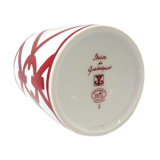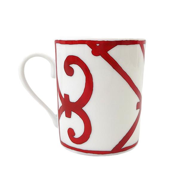 HERMES mug cup Guadalquivir No2 300ml Blanc (White) /Rouge Porcelain[EXCELLENT][Authentic]