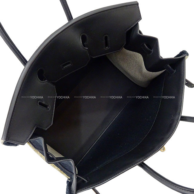 HERMES Handbag Birkin35 Fray Fray Noir (Black) Toile Twill H/Veau Swift Silver HW Stamp Y[EXCELLENT][Authentic]
