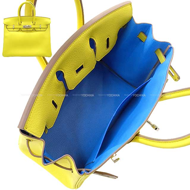 HERMES Handbag Birkin25 Verso Lime/Blue Bleuet Veau Madame Silver HW Stamp Z[EXCELLENT][Authentic]