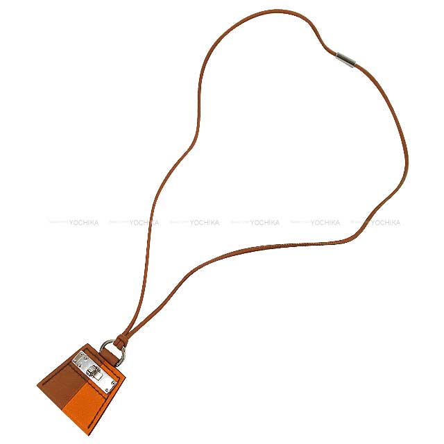 HERMES necklace Monpetitkelly PM Orange/Gold Veau Swift Silver HW[EXCELLENT][Authentic]