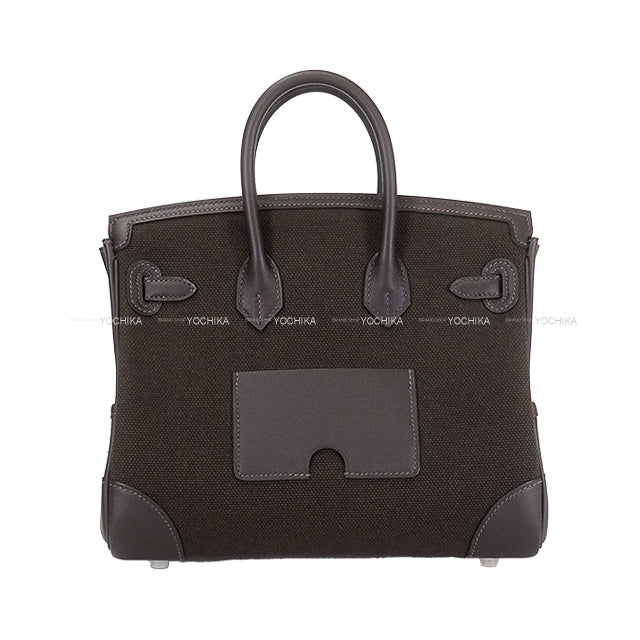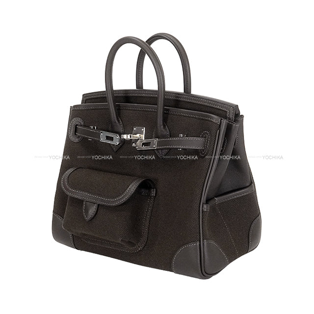 HERMES Handbag Birkin25 Cargo Pockets Ebene/Dark Bronze Toile Goeland/Veau Swift Silver HW Stamp W[BRAND NEW][Authentic]