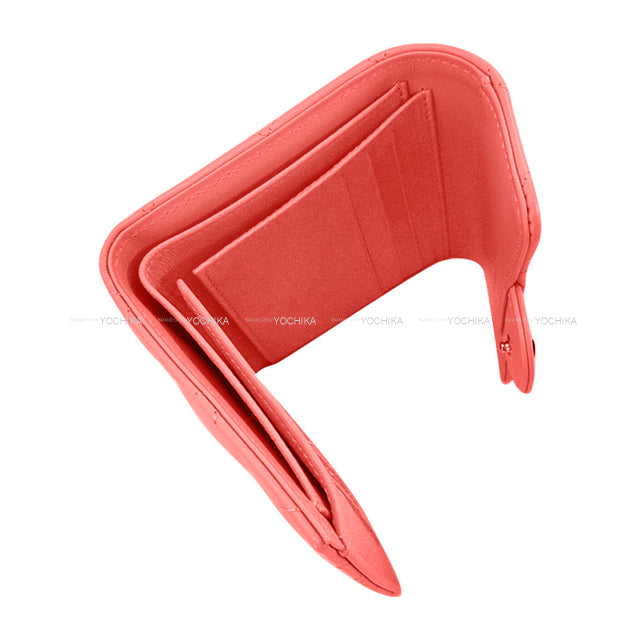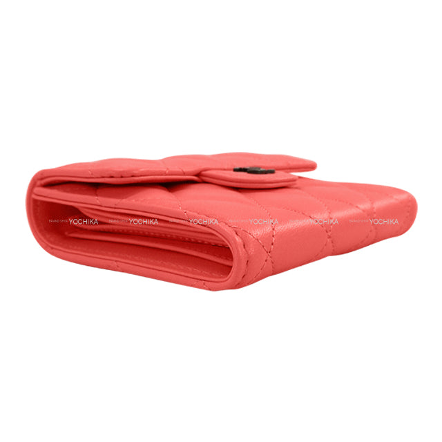 CHANEL Tri-fold wallet Classic Matelasse COCO mark with Coin Case Small Flap Pink Lambskin Black HW AP0231[ALMOST NEW][Authentic]