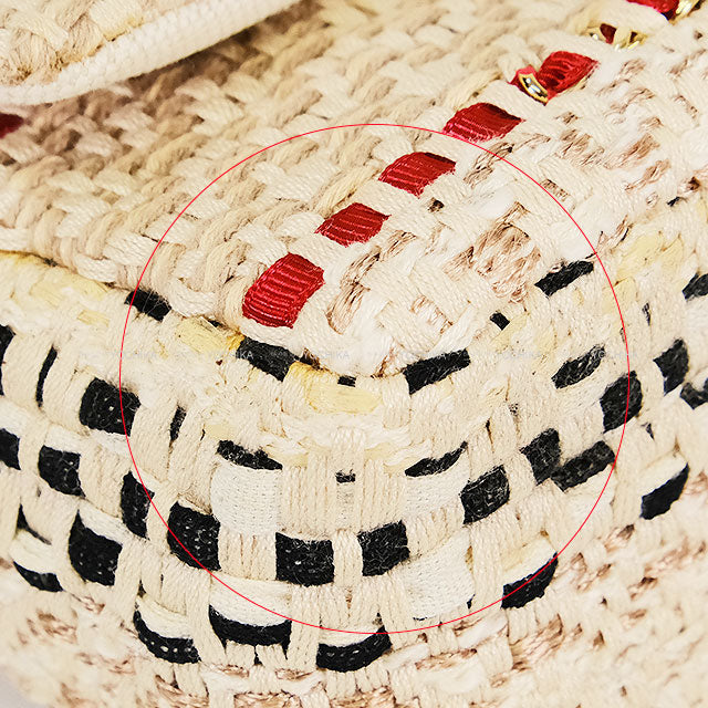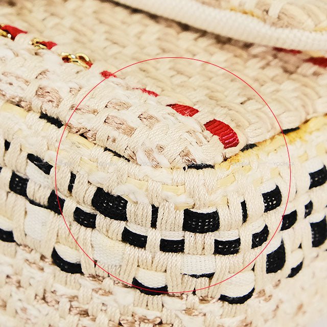 The iconic Mini Matelassé bag from CHANEL has just arrived! Crafted from airy raffia with a natural base, this piece is elevated by perfectly balanced accents in black, white, and red. The antique gold-tone chain adds a touch of refined vintage elegance. Despite its compact size, it retains the unmistakable presence and glamour of CHANEL, while being lightweight and highly practical. Ideal for everything from resort getaways to everyday city wear, this versatile bag blends seasonal charm with timeless luxury. A must-have for those looking to add effortless sophistication and a touch of summer elegance to their wardrobe. Color: Material:Raffia Buckle:Antique Gold HW Accessories:storage bags、Guarantee card Product Condition: EXCELLENT SKU:25051109