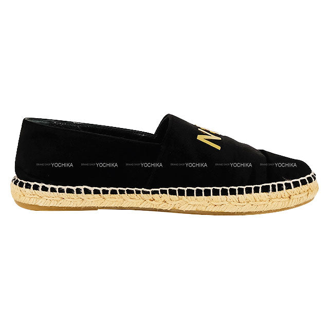 A must-see for CHANEL fans and those looking for espadrilles! We have espadrilles in size 37 (23.5 cm) with an impactful CHANEL logo on the instep. A very innovative design with ""CHANEL"" written all over the shoes. If the size fits, this is a must-buy. Espadrilles are shoes that can be worn casually at resorts. They are also perfect for everyday use. Don't miss this opportunity. Color:Noir (Black) Material:Suede