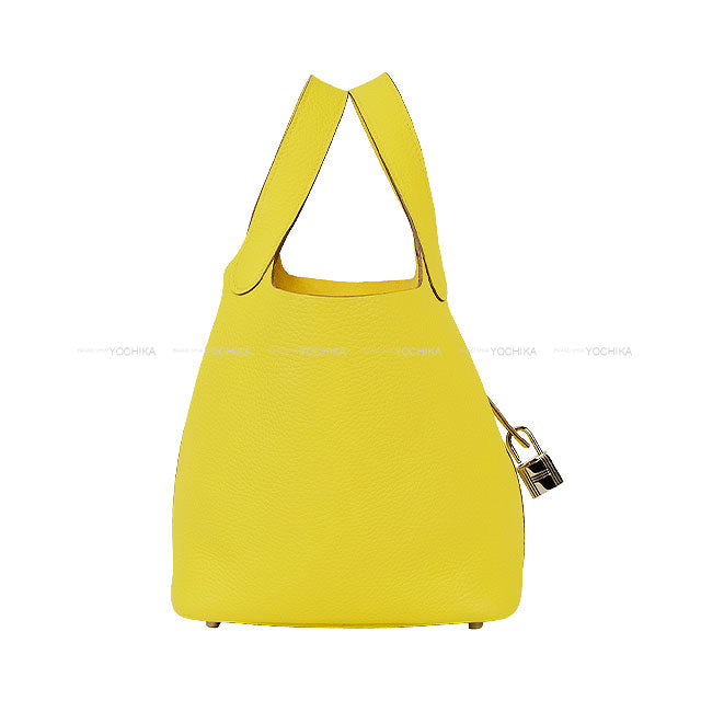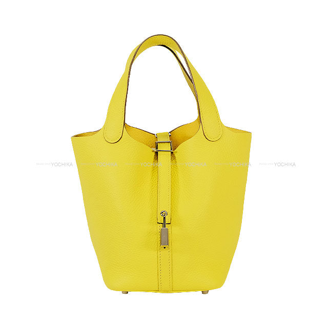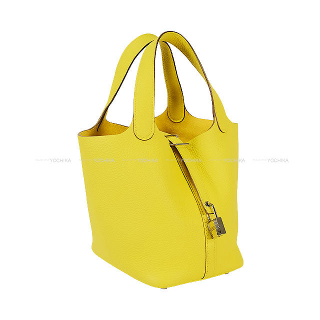 [Pre-loved] HERMES Handbag Picotin Lock 18 PM Lime Taurillon Clemence Silver HW Stamp Z[USED SA][Authentic]