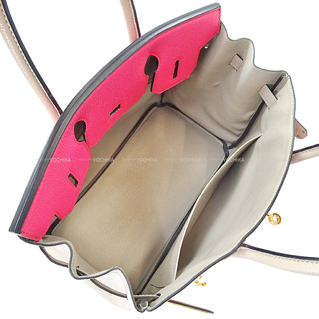 [Pre-loved] HERMES Handbag Birkin30 Special order HSS Toricolor Gris Tourterelle/Pink/Rose Tyrien Chevre Mysore Gold HW Stamp □P[USED SA][Authentic]