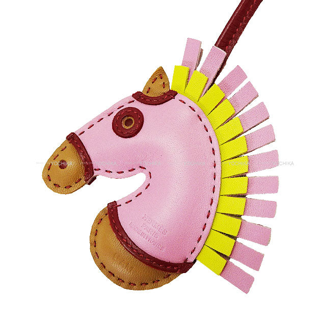 [Pre-loved] HERMES bag charm GG Camaille Mauve sylvestre/Chai/Rouge Grenade Agneau Milo Stamp U[LIKE NEW][Authentic]