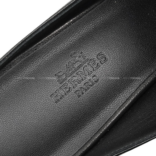 HERMES Mules GLORY 40 sandals Noir (Black) Nappa leather #38[EXCELLENT][Authentic]