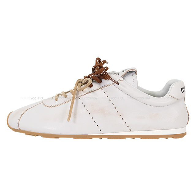 Miu Miu sneakers Plume Bleached Two-Tone Cord Shoes with Shoelaces Blanc (White)/Brown Nappa Leather #38 5E114E[BRAND NEW][Authentic]