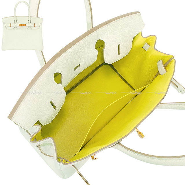 Hermès' "Mushroom" color is an indescribable neutral, neutral tone extracted from nature. This color is worn on the outside, and when you open the flap, a vibrant lime color pops out from within. This exquisite neutral color, far from being achromatic, complements and blends with any other color. Its size makes it easy to wear every day, and it's a popular size among women today. This Birkin bag will support those who want to move energetically and shine from within. Get your hands on one. Color:Mushroom(0T)/Lime(9R) Material:Veau Togo Buckle:Rose Gold HW Accessories:box、storage bags、key、Cadena、Clochette、Rain cover Specification: [Inner pocket]
