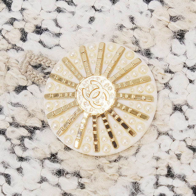 CHANEL Stainless collar coat Long Jacket 3/4 Sleeve COCO Mark Button Tweed Ivory Acrylic/Wool #44 Gold HW P54620[BRAND NEW][Authentic]