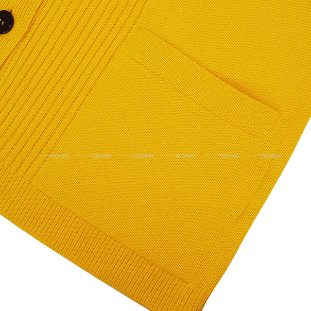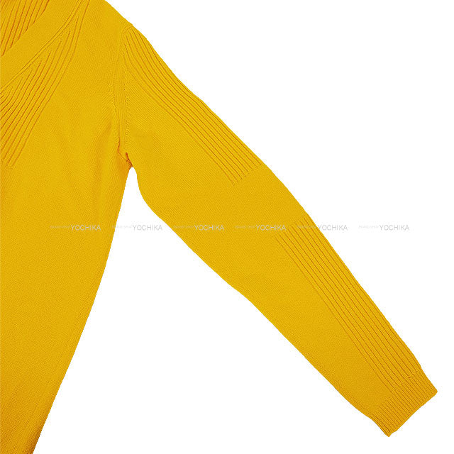 HERMES Cardigan Ladies Long Sellier Button Jaune Cashmere #36[BRAND NEW][Authentic]
