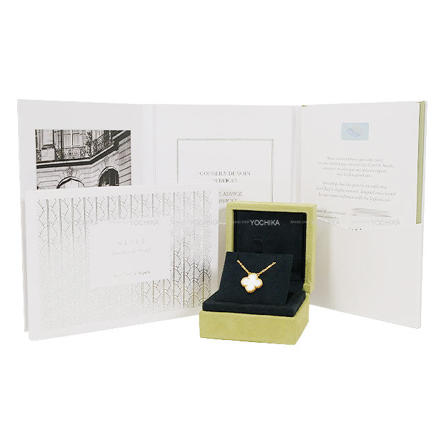 A necklace from Van Cleef & Arpels has arrived! The combination of the Maison's iconic four-leaf clover motif, The combination of gorgeous yellow gold and mother-of-pearl, with its beautiful luster and intricate blend of colors, exudes a sophisticated, mature elegance. Although it has a classic and simple design, its brilliance and presence will catch the eye of anyone who sees it. This is why it is loved as a staple of high-brand jewelry. Please take this opportunity. Material:K18YG/Mother of Pearl Chain:-42cm Accessories:box、Warranty Product Condition: EXCELLENT SKU:25100617