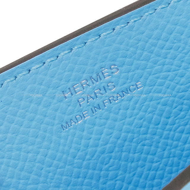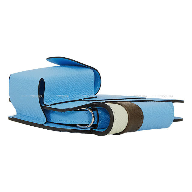 HERMES Carrying case Smartphone Case HERMES way with lipstick case Celeste/Blanc (White)/Chocolat Veau Epsom Silver HW Stamp B[EXCELLENT][Authentic]