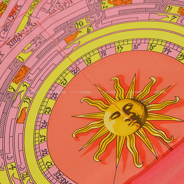 HERMES Pouch Foolby25 Astrology Rose Jaipur/Multicolor Silk100%/Veau Barenia Silver HW Stamp Y[EXCELLENT][Authentic]