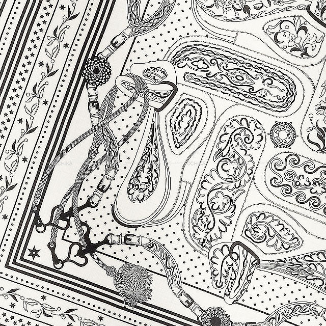 2025SS HERMES scarf Carre 140 Festival des Amazones Bandana Noir (Black)/Blanc (White) Cashmere70% / Silk30%[EXCELLENT][Authentic]